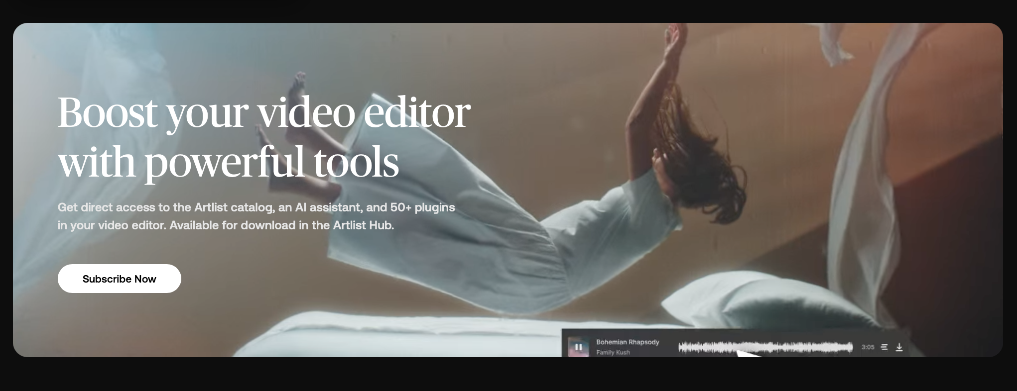 A Unified Workflow: By combining assets and creation tools under one subscription, Artlist simplifies the creative process and eliminates the need for multiple services.
